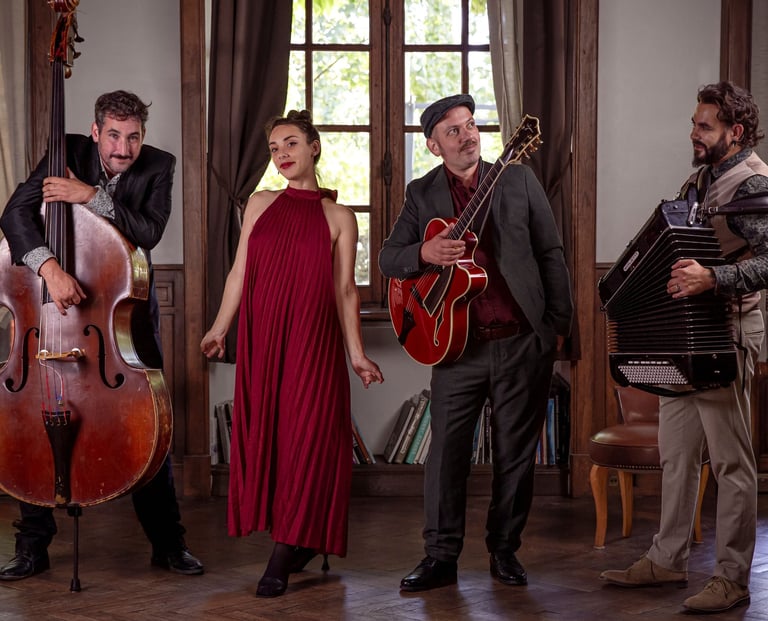 Le répertoire, puisant dans l’héritage de grandes figures telles que Billie Holiday, Édith Piaf ou Django Reinhardt fait revivre l’atmosphère des bals populaires et des clubs de jazz d’antan tout en y insufflant une fraîcheur contemporaine grâce à des reprises revisitées et même quelques compositions originales.
